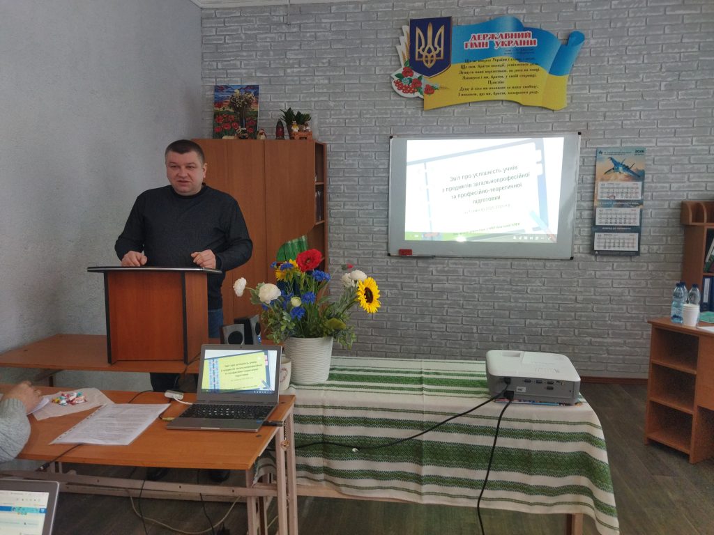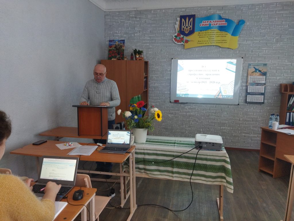 Аналіз та здобутки. Під керівництвом т.в.о. директора Олександра Вознюка педагогічний колектив проаналізував стан виконання попередніх рішень та результати навчально-виробничого процесу за І семестр 2025-2026 навчального року. Спеціально створені творчі групи, до складу яких увійшли заступник директора з НВР Анатолій Члек, методист Світлана Салієва та старший майстер Анатолій Фаліштинський, представили глибокий аналіз теоретичного навчання та професійної підготовки студентів за І семестр.